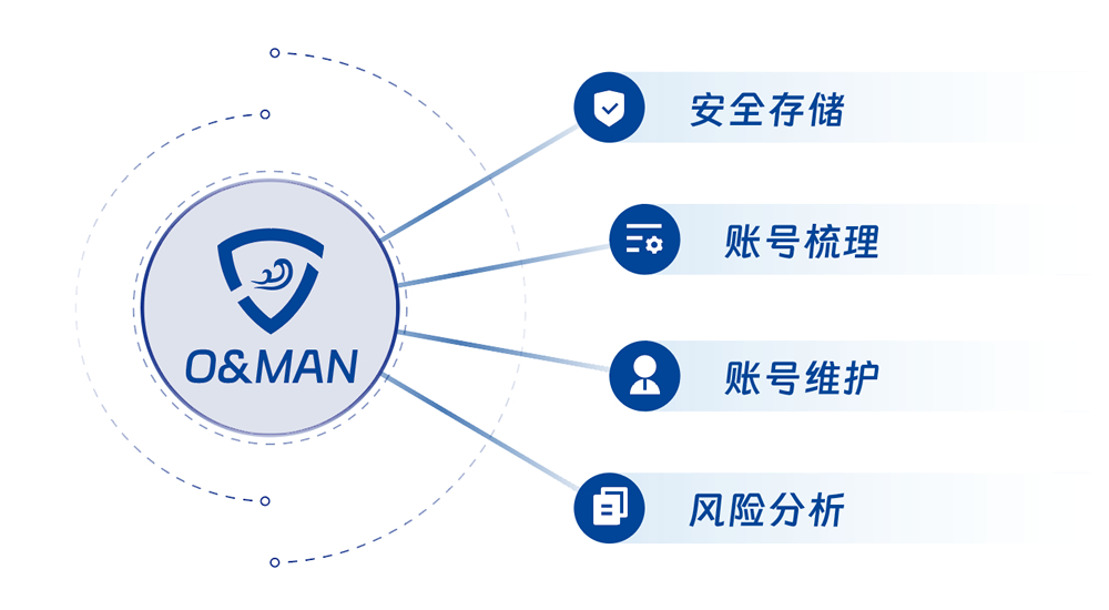 实现了从账号梳理到账号存储全生命周期的闭环管理,,,包括账号梳理、、、风险分析、、、账号存储等账号管理功能。。。。账号梳理模块,,,,可以自动化的按照网段批量地进行账号以及账号属性的采集;风险分析可以按照内置的风险检测规则、、、、自定义的弱密码规则等进行账号风险的分析,,,,发现账号台账中的弱密码账号、、、、提权账号等账号风险问题,,通过账号维护模块中的账号工单、、、、密码修改等进行账号的维护管理以解决账号风险;账号存储可以存放进具备国密加密芯片,,,独立硬件部署的密码保险箱,,,以确保账号密码存储的安全。。。