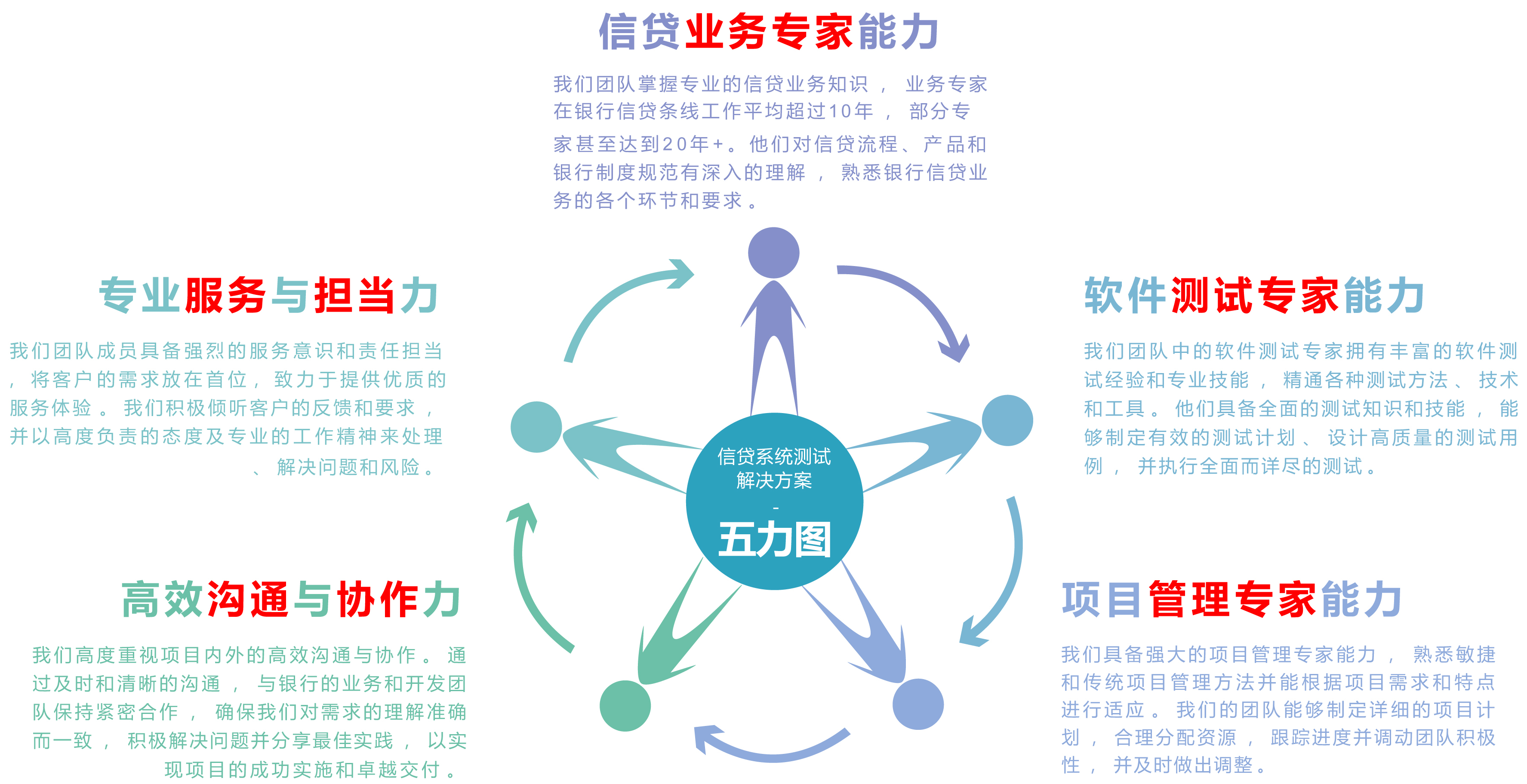 我们将以快速响应能力为导向,,,及时处理银行在信贷类系统测试过程中遇到的问题和需求变,以确保项目的成功实施、、、符合客户预期。。。